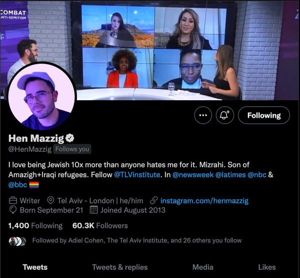 Hen Mazzig is an Israeli writer, speaker, and digital creator described by The New York Times as one of the most nuanced online commentators on Israel and Jewish issues of our time.